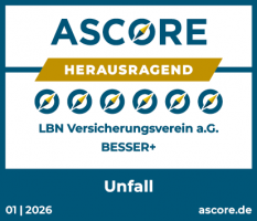 Unsere aktuellen Tarife LBN-BESSER+ sind sowohl in der Unfallversicherung (104 Tarife von 58 Gesellschaften) als auch in der Hausratversicherung (116 Tarife und 44 Gesellschaften) von dem unabhängigen Analyseunternehmen [ascore] Das Scoring getestet und für ausgezeichnet, bzw. herausragend befunden worden. Der ab 01.01.2026 gültige Tarif wurde vorab geprüft und zertifiziert.